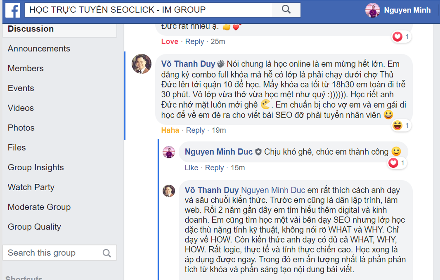 CẢM NHẬN HỌC VIÊN HỌC CHƯƠNG TRÌNH SEO CỦA NGUYỄN MINH ĐỨC